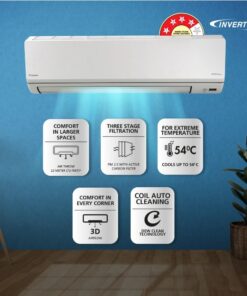 - Split AC with Inverter Compressor: Automatically adjusts power based on heat load for optimal performance.