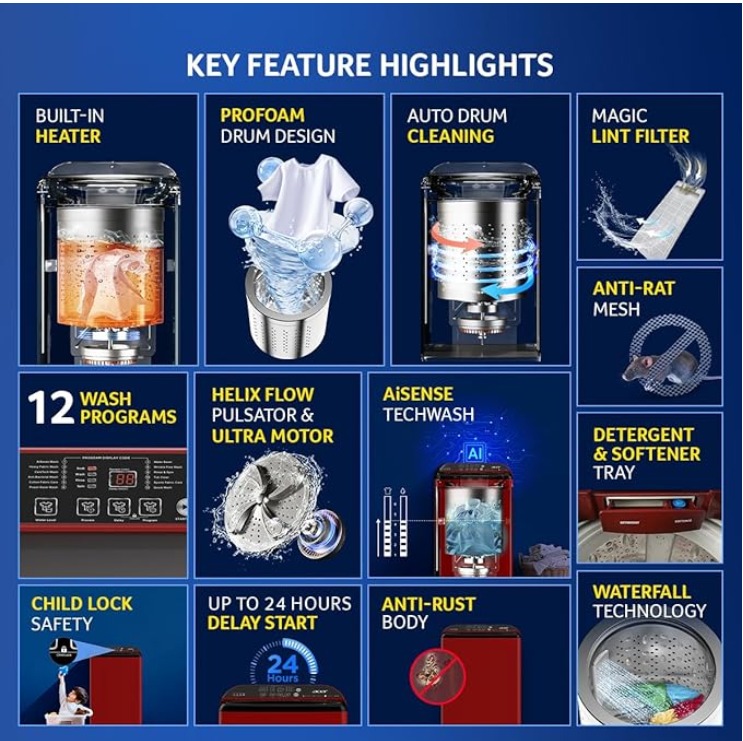 - Inbuilt Heater → better stain removal & hygiene