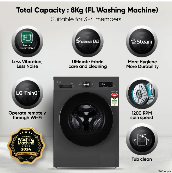 The LG Fully Automatic Top Load Washing Machine offers advanced features like 6 Motion Direct Drive, TurboDrum, and Jet Spray+, providing superior cleaning and fabric care. It includes a Steam with an In-Built Heater for hygienic washing, eliminates allergens, and ensures efficient washing performance. Smart Diagnosis offers instant solutions, while Auto Restart and Standby Power Save enhance convenience. Experience exceptional washing results with enhanced fabric protection and power-efficient performance.